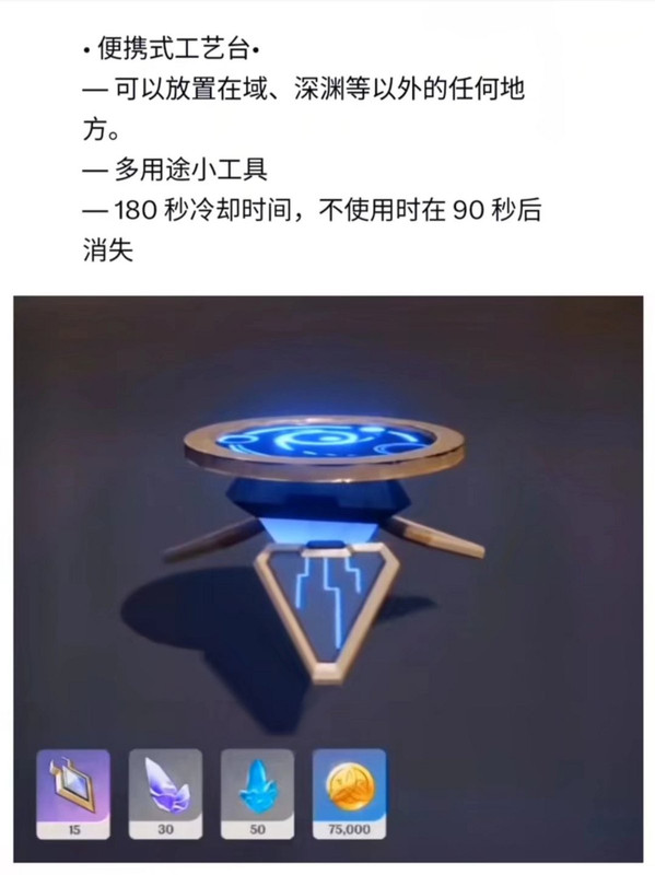 3.7新道具First Post: 2023-04-03Last Update: 2023-04-03顺带说一下,个人觉得,这里的“域”是指秘境文字: 可以放置在域、深渊等以外的任何地方。 多用途小工具 180秒冷却时间,不使用时在90秒后消失 合成材料: 辉光棱晶* 15 晶化骨髓* 30 水晶块* 50 摩拉* 75000 最后说一下,关于枫丹的信息可信度还是不太高,毕竟才3.5版本。 rewardAlipayWechat∧≡